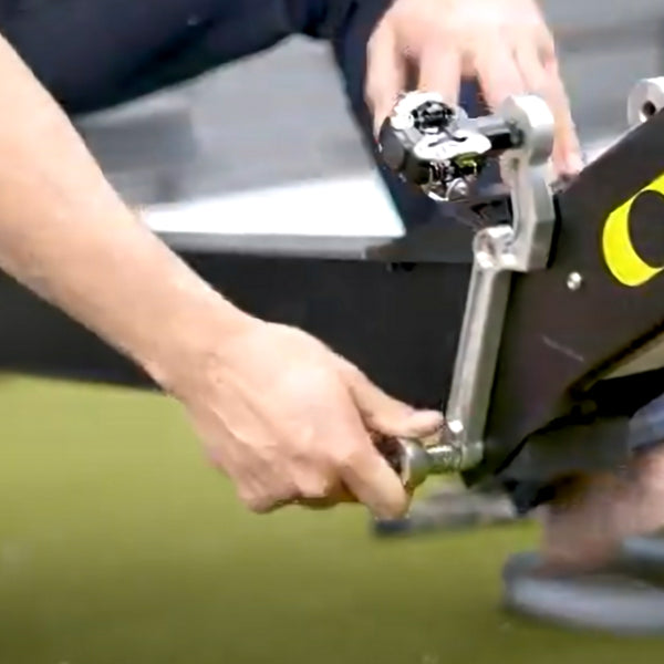 RowRails enables the removal of standard footboards, and, using precise design and biomechanical analysis, allows the athlete to use clip-in pedals and shoes for a more efficient and explosive workout.